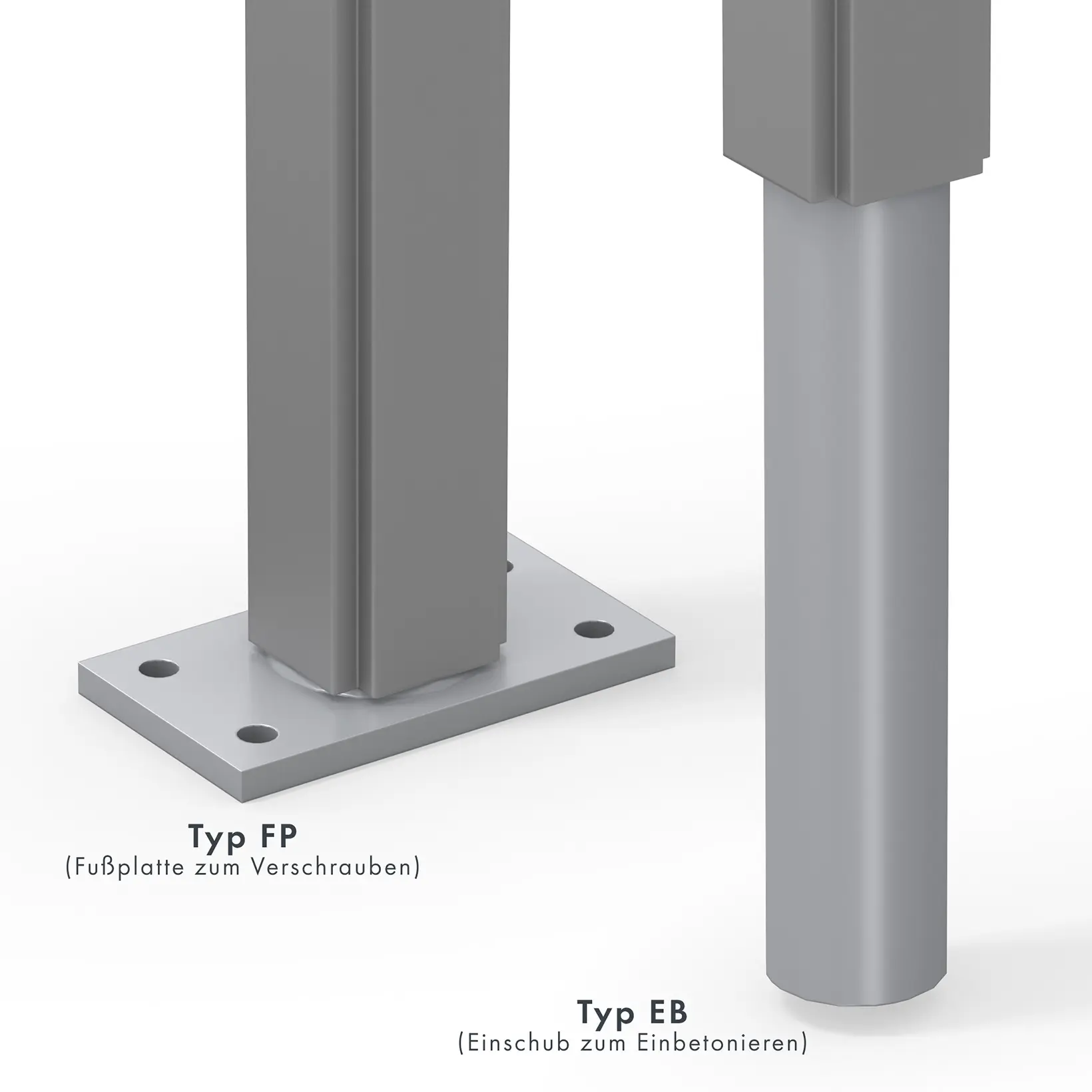 • Standbeine: mit Standbeinen zum Einbetonieren
